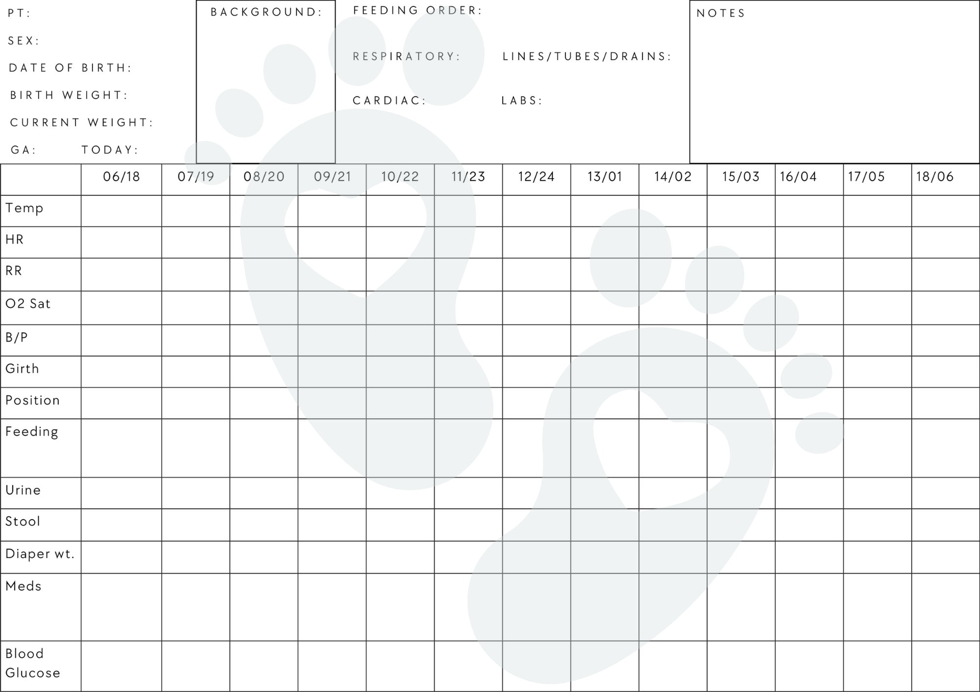 Printable NICU Report Sheet Template