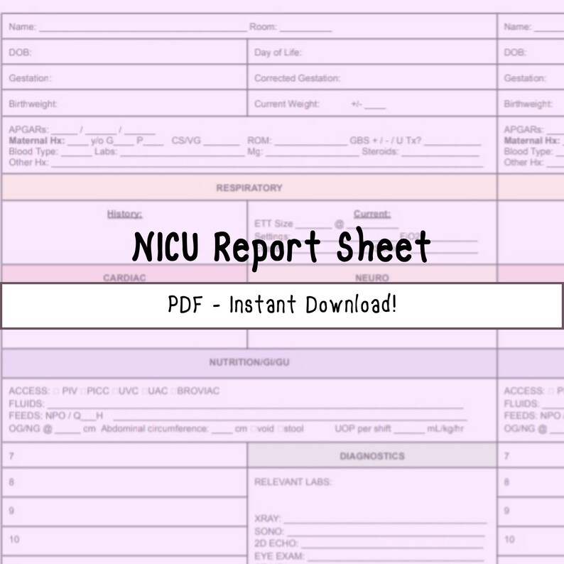 Printable Nicu Report Sheet Etsy