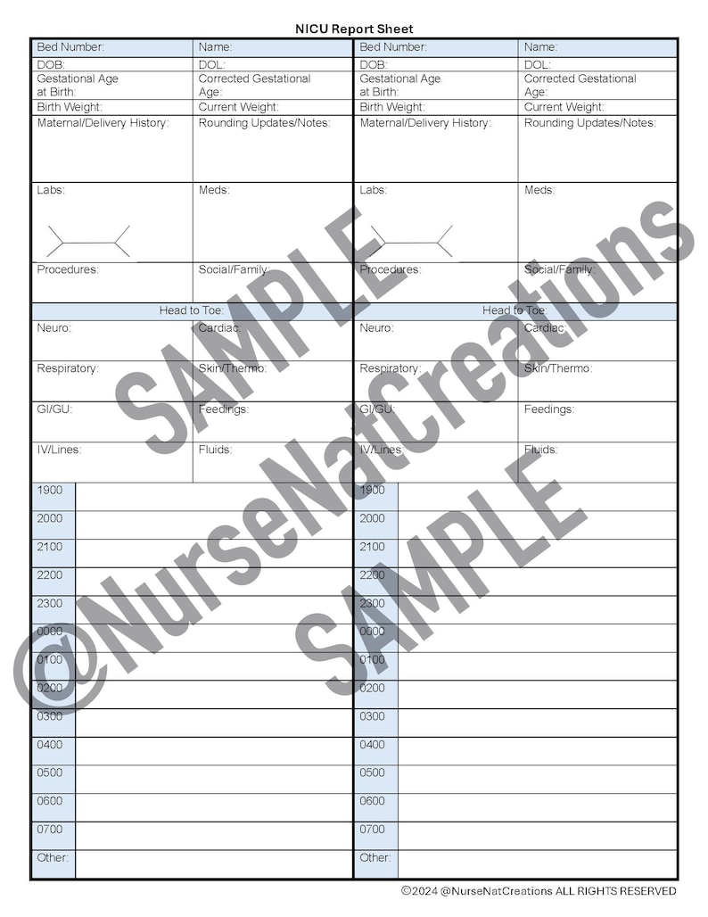 NICU Nurse Report Sheets Bundle NICU Nurse Report Templates NICU Nurse