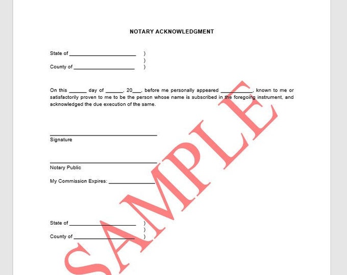 Notary Acknowledgement Form Etsy