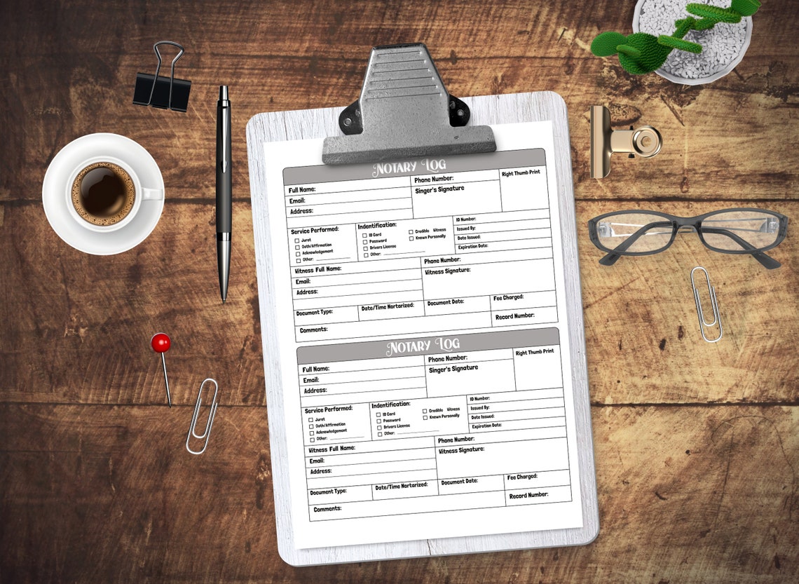 Notary Log Printable Notary Public Record Notary Journal Notary Book