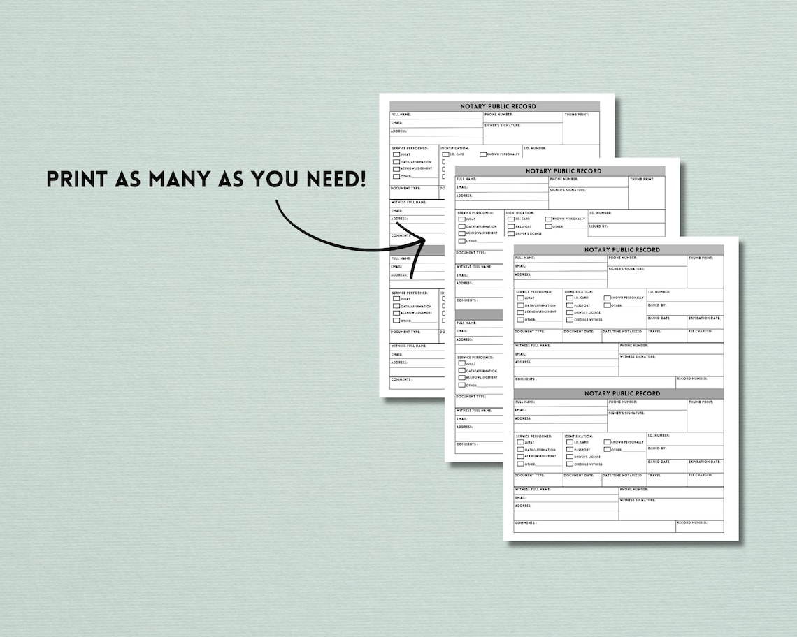 Printable Notary Journal Notary Log Printable PDF Notary Record