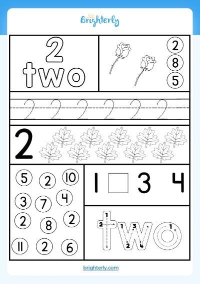 Free Printable Number 2 (Two) Worksheets for Kids PDFs