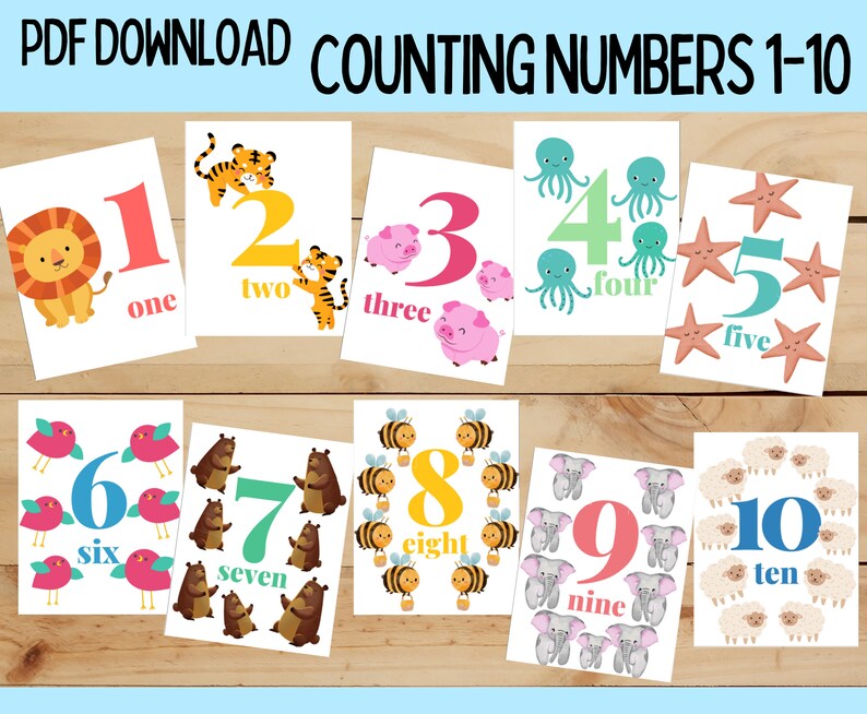 Flashcards Printable Counting Numbers 1 10 for Kids Toddlers Etsy