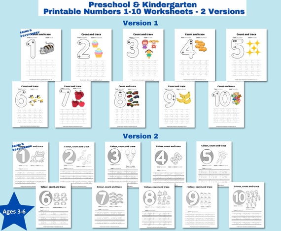 Printable Preschool and Kindergarten Numbers 1 10 Tracing Etsy
