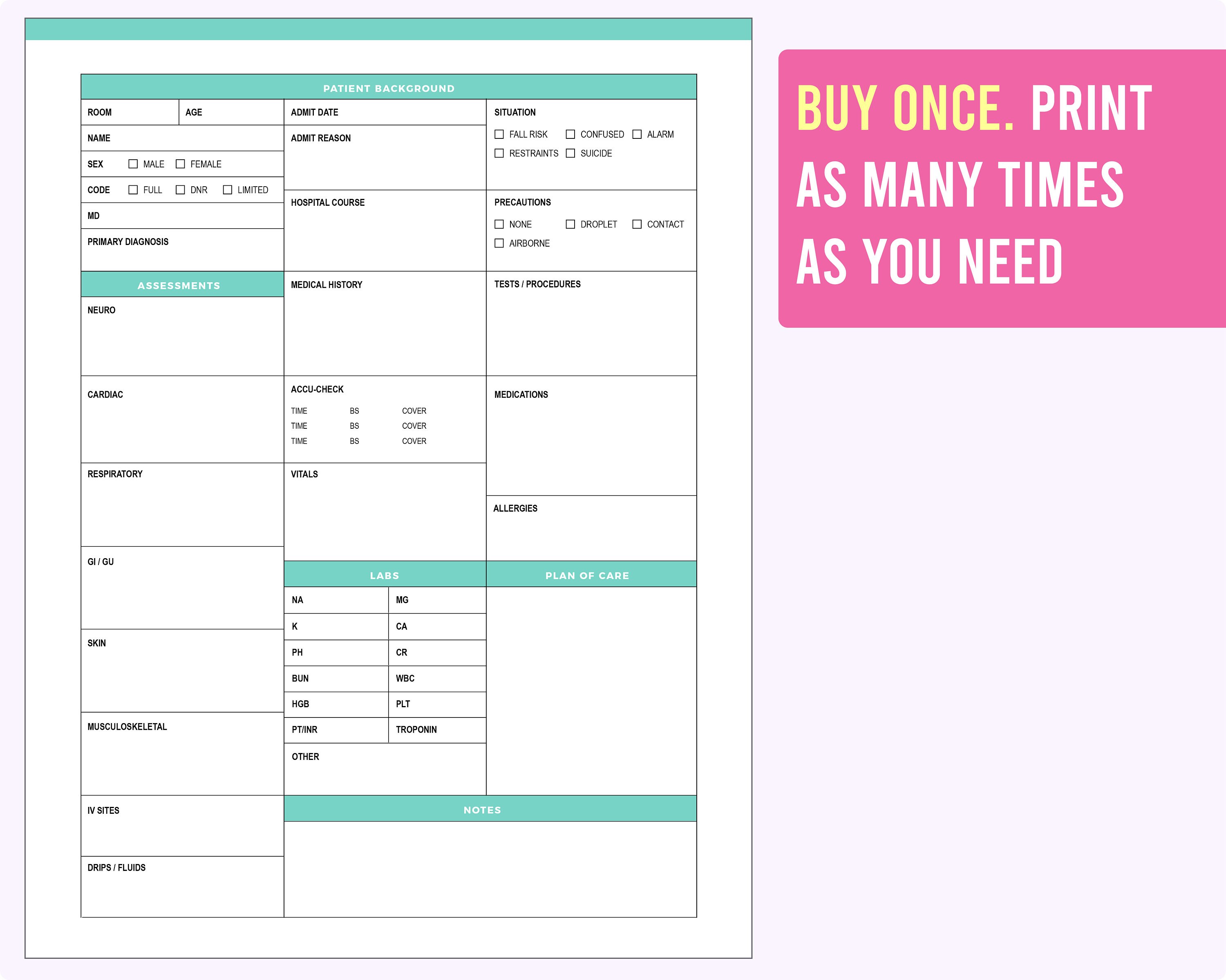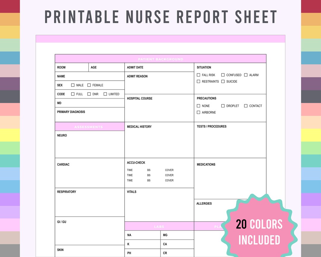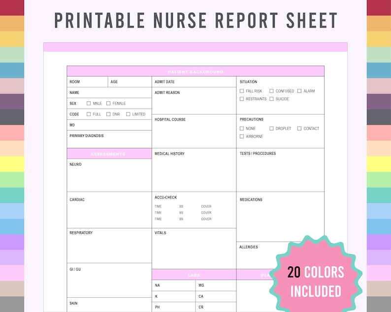 Printable Nursing Brain Report Sheet PDF File and Word Etsy
