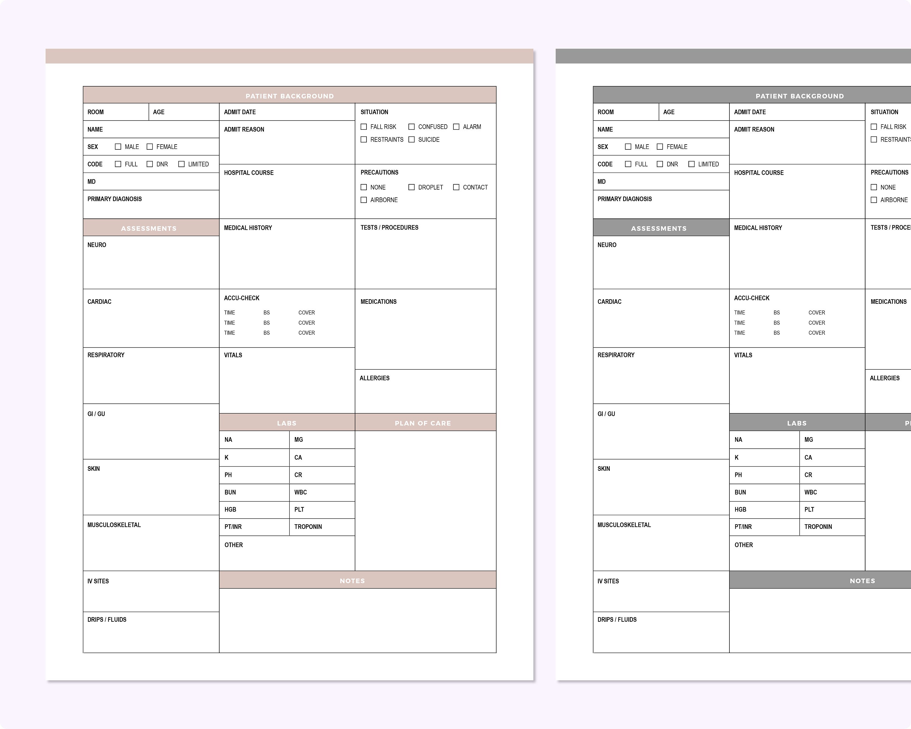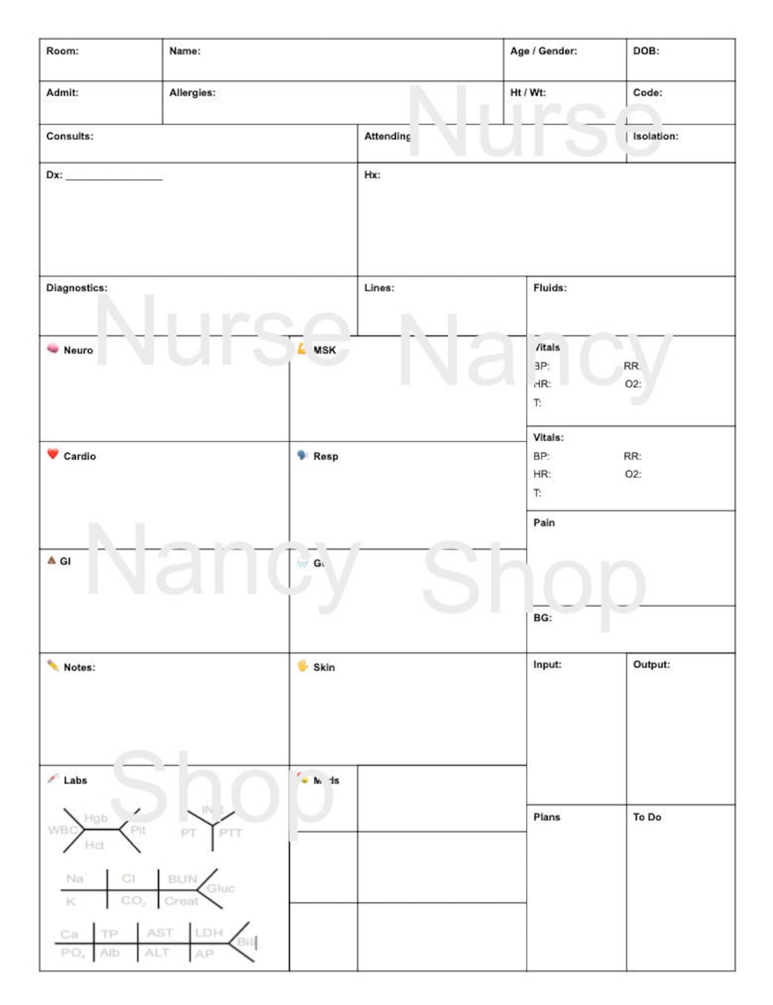 Nurse Report Sheet Printable Nursing Brain Sheet Etsy
