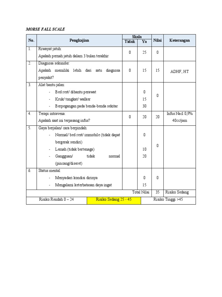 Modified Morse Fall Risk Assessment Scale Free Math Worksheet Printable