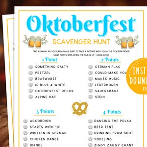 Oktoberfest Scavenger Hunt Printable Oktoberfest Party Games German