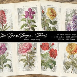 Junk Journal Printable Old Book Pages Garden Flowers Paper Pack