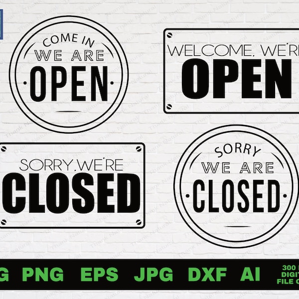 Open and Closed Script Sign SVG Bundle Digital File for Shops Home Etsy