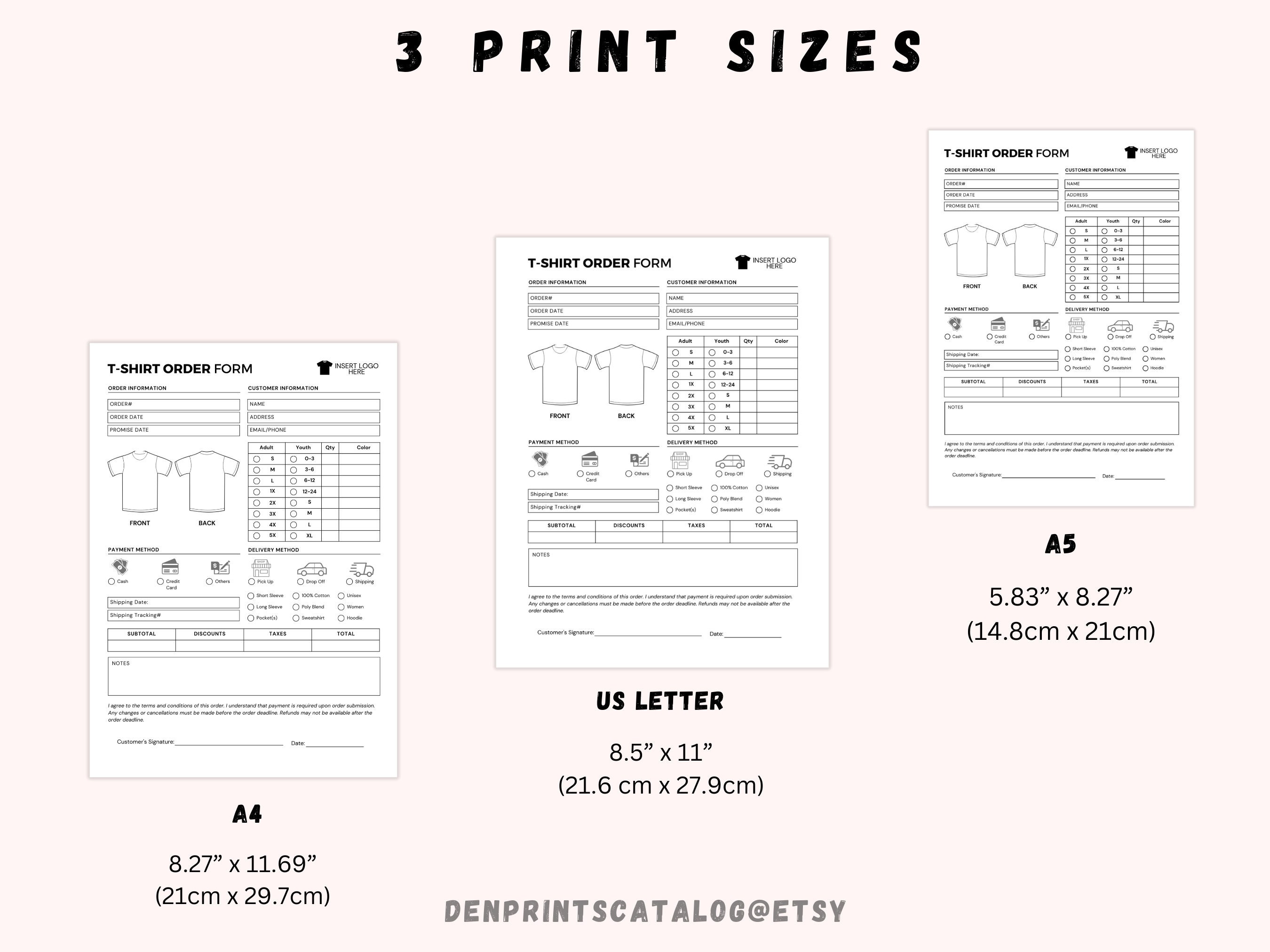 T shirt Order Form Template: Editable Canva Design (printable PDF