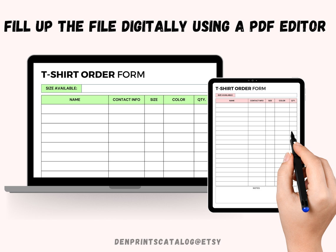 Printable Tshirt Order Form Template Editable Order Form Customizable T