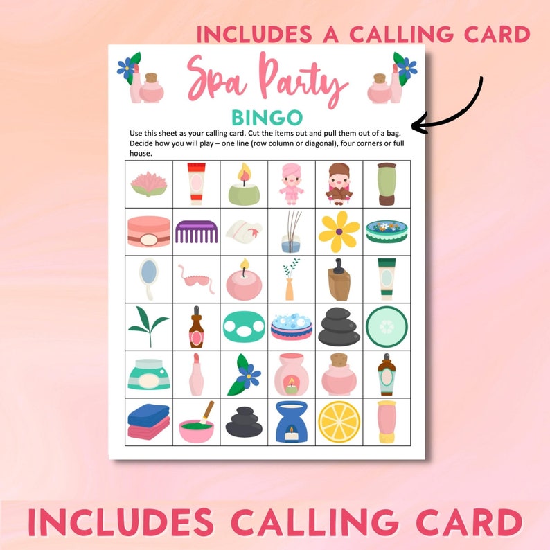 Printable Spa Party Bingo Game Pamper Party Girls Birthday Party
