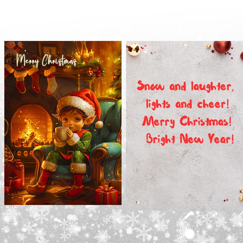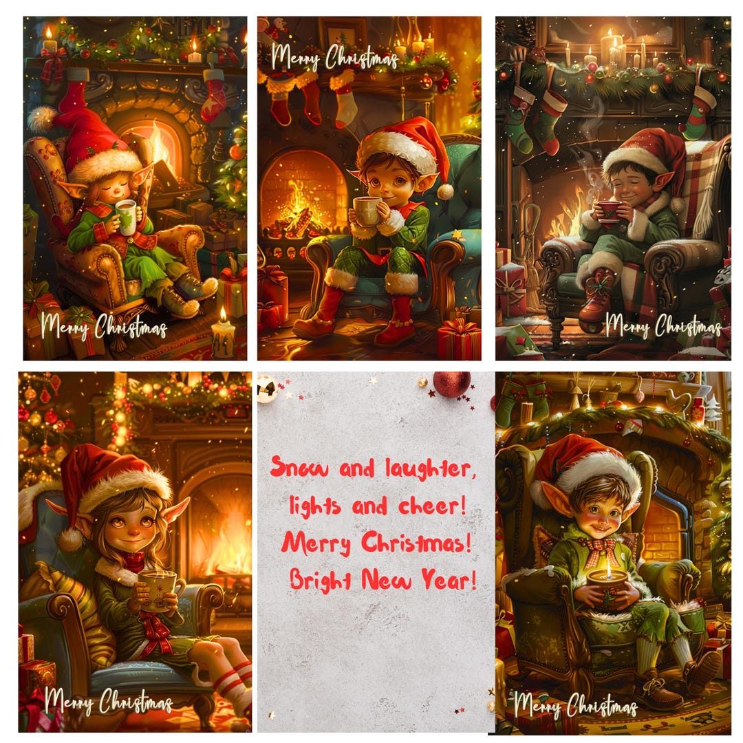 Christmas Elf Cards Printable Set Cozy Fireplace Holiday Collection