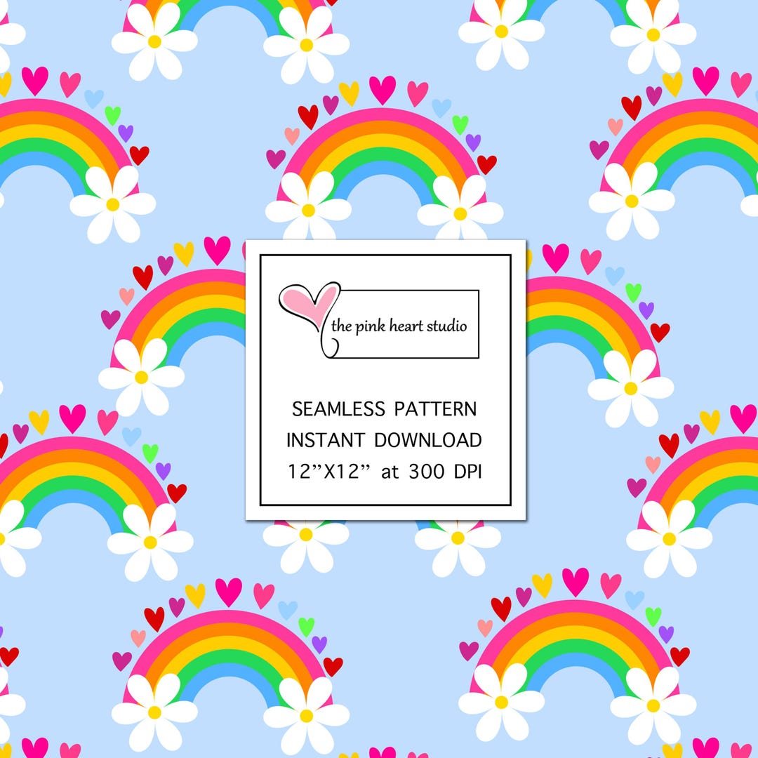 Rainbow Seamless Png Digital Printable Paper Hearts Colorful Rainbows