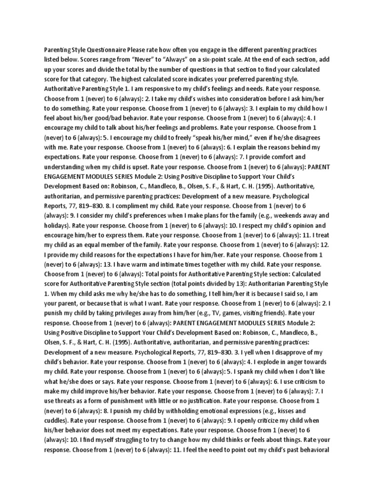 Authoritarian Parenting Style Questionnaire PDF