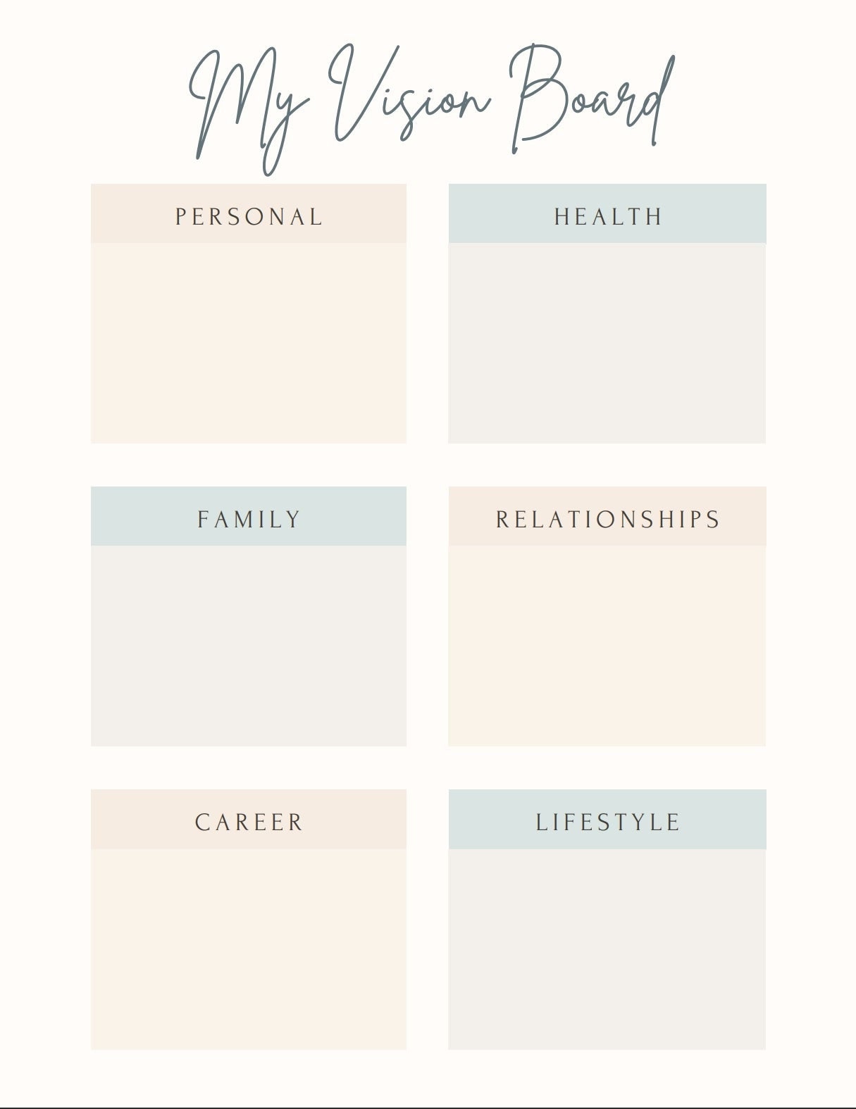 Printable Basic Vision Board Template Free download and print for you