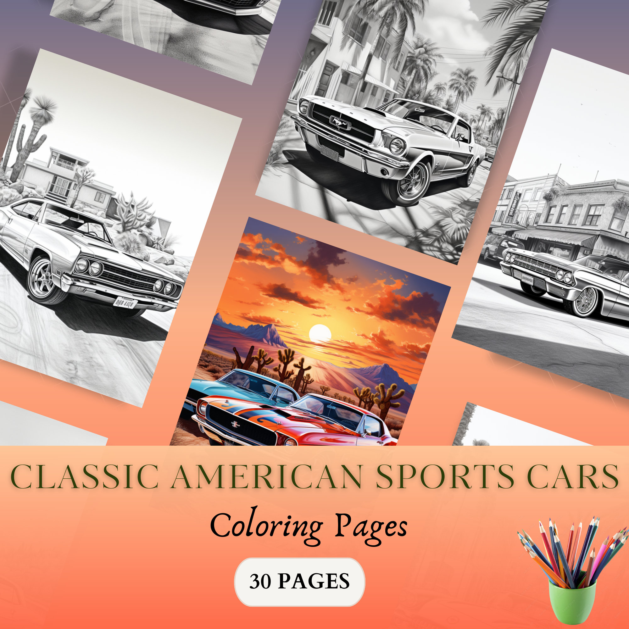 30 Classic American Sports Cars Coloring Pages Retro Design