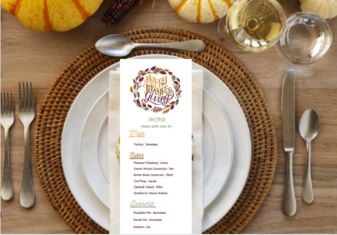 Thanksgiving Menu and Place Cards Dinner Party TEMPLATE Printable