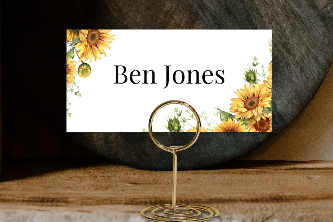 Sunflower Editable Name Place Cards Dinner Party Name Place Cards