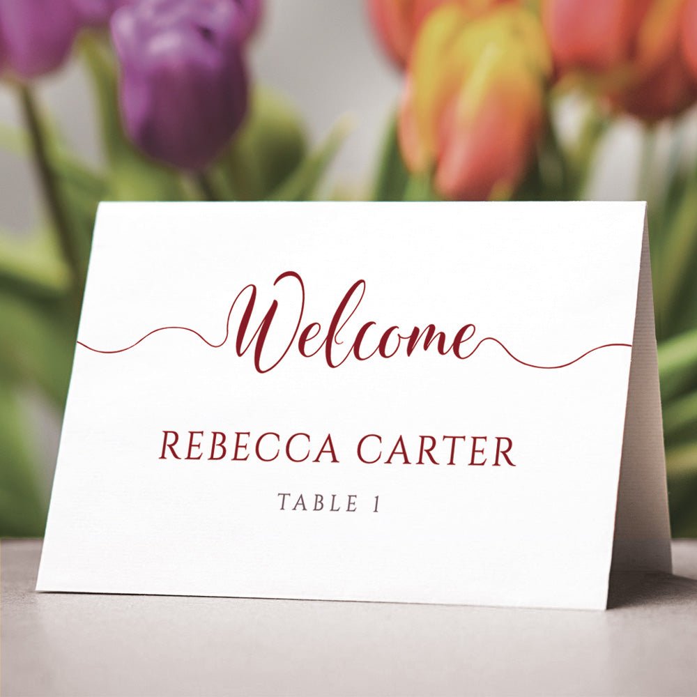 Printable Editable Burgundy Wedding Place Cards Template PDF