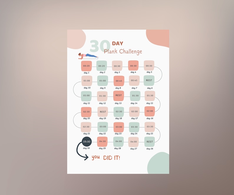 30 Day Plank Challenge Digital Fitness Guide Printable Plank Challenge