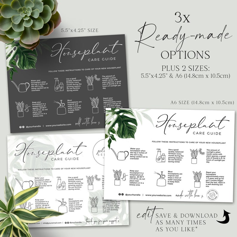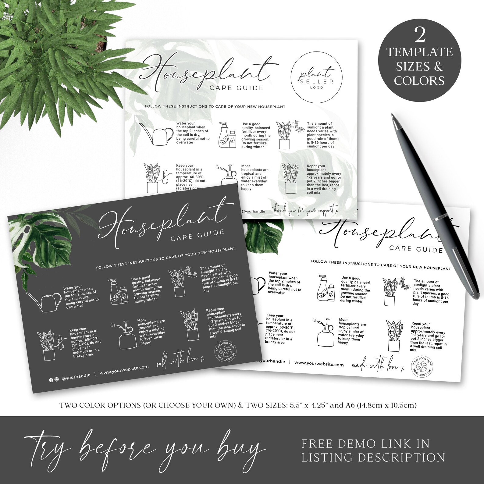 Editable Houseplant Care Card Printable Plant Care Template Etsy
