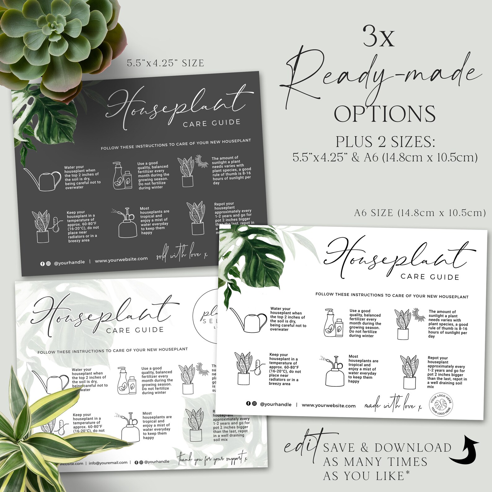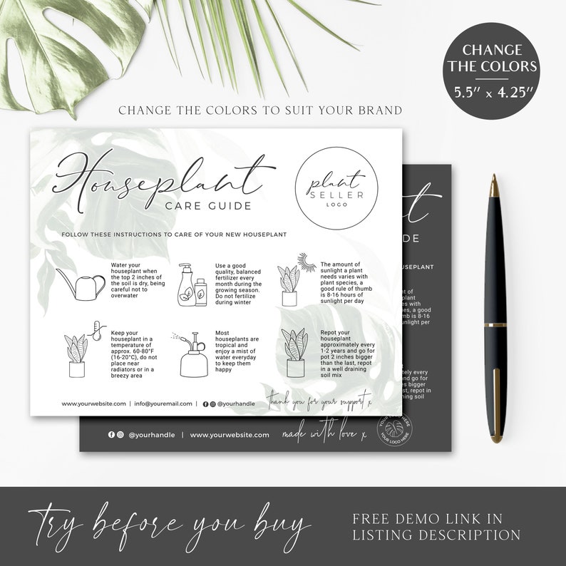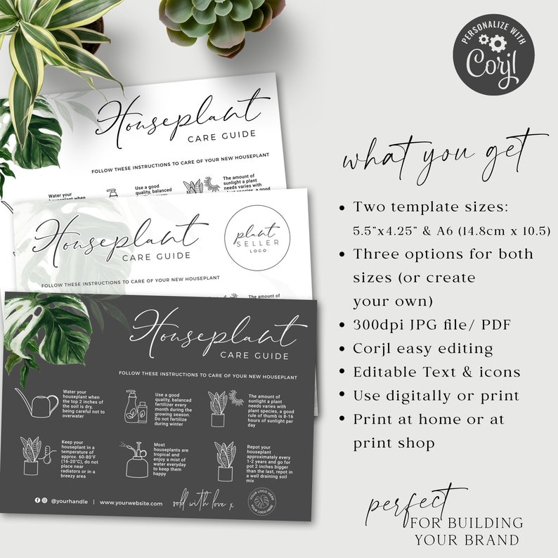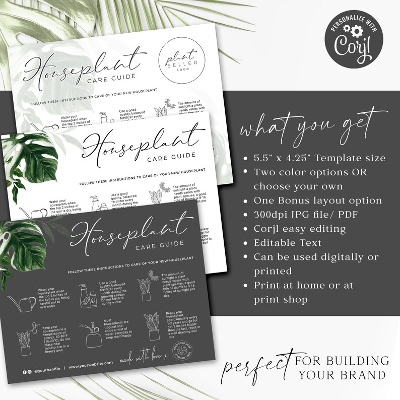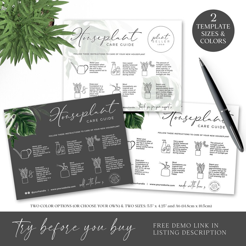 EDITABLE Plant Care Card Printable Plant Care Template Multi Use