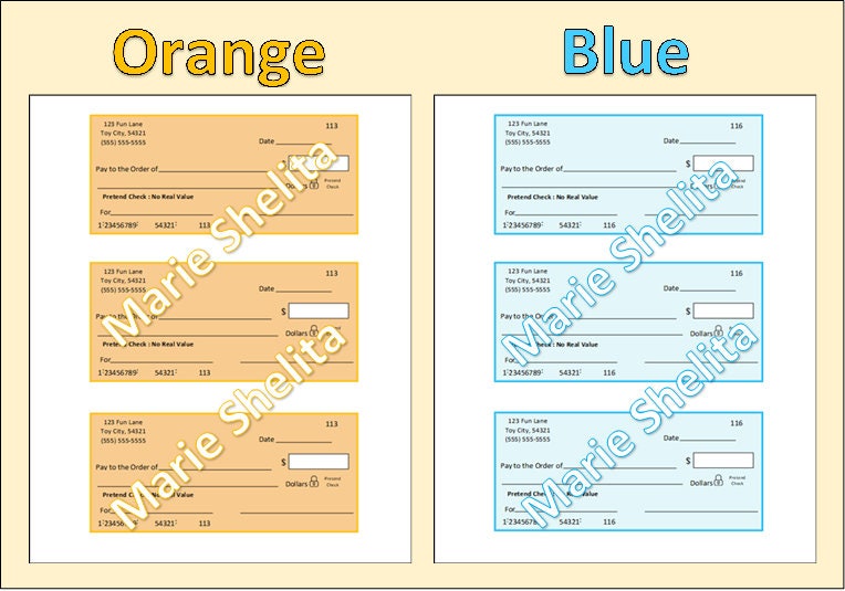 Editable Children #39 s Play Checks~printable Pretend Play Checks~toy