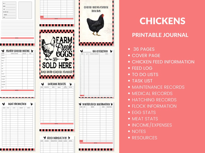 Backyard Chicken Journal Printable Chicken Record Keeping Etsy