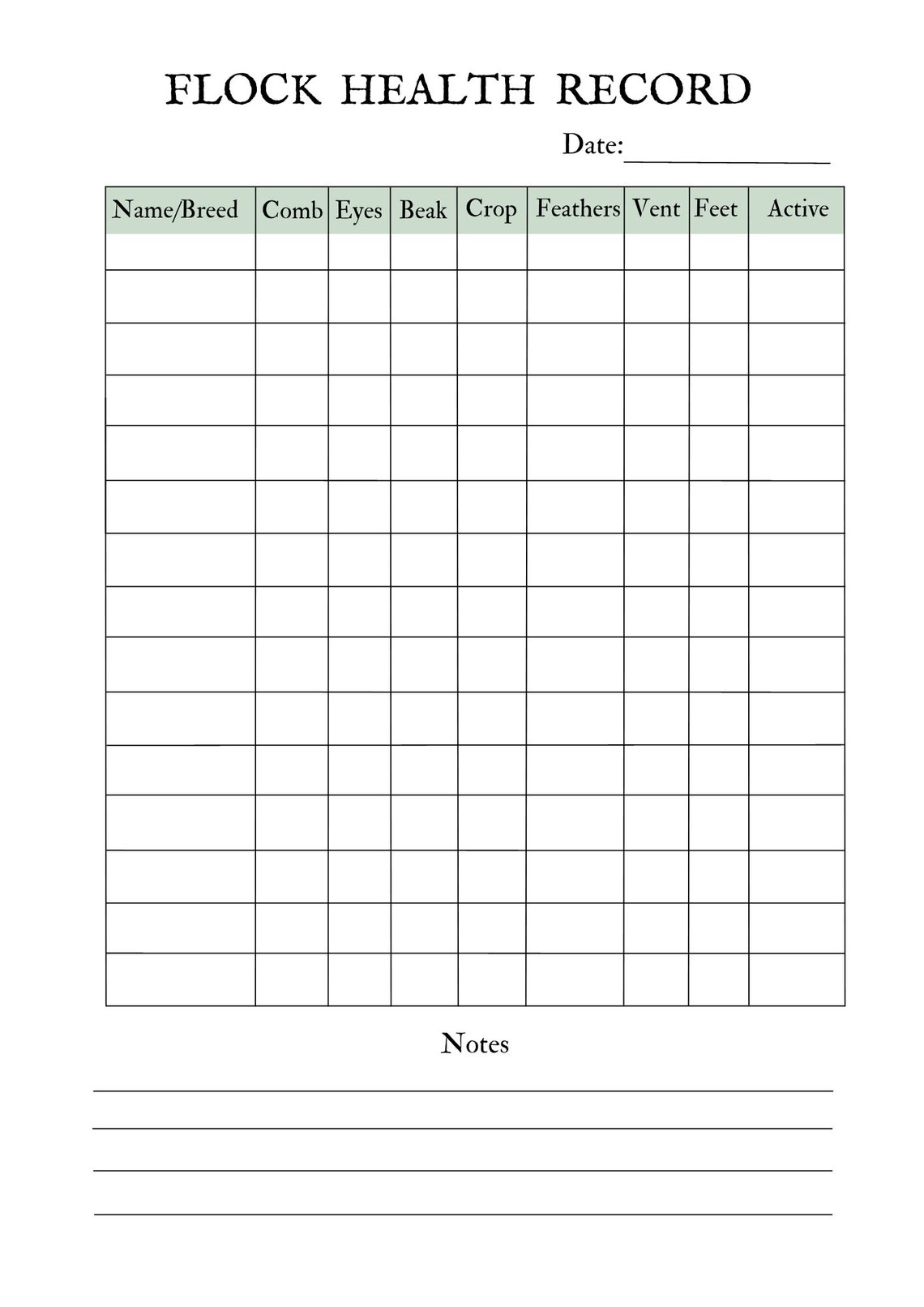 Printable Poultry Record Keeping Templates Printable Calendars AT A