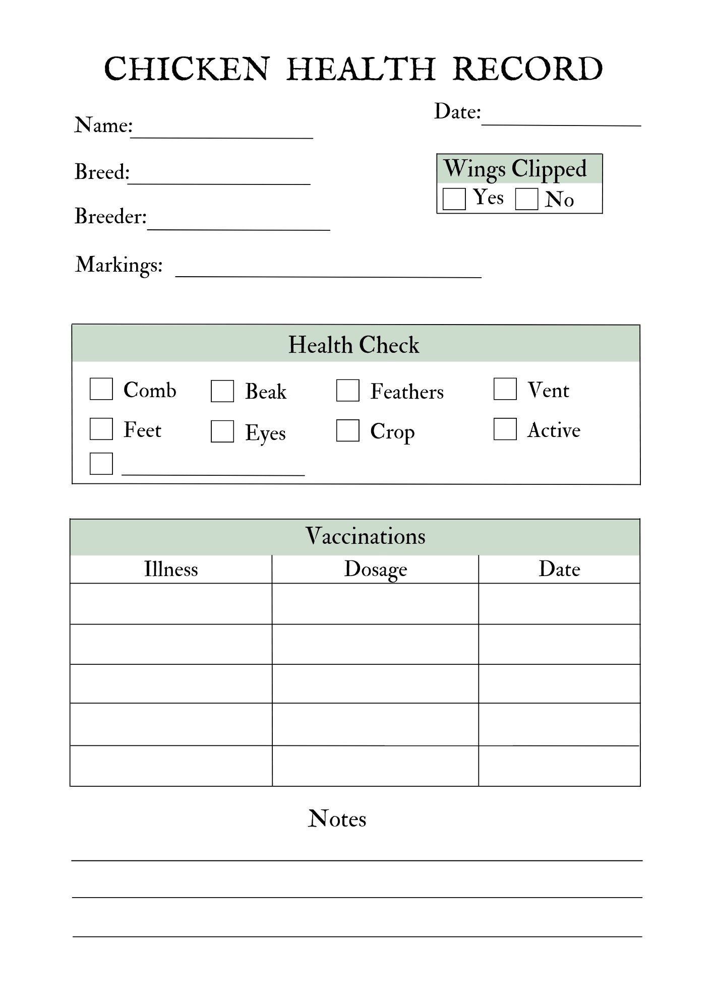 Printable Poultry Record Keeping Templates