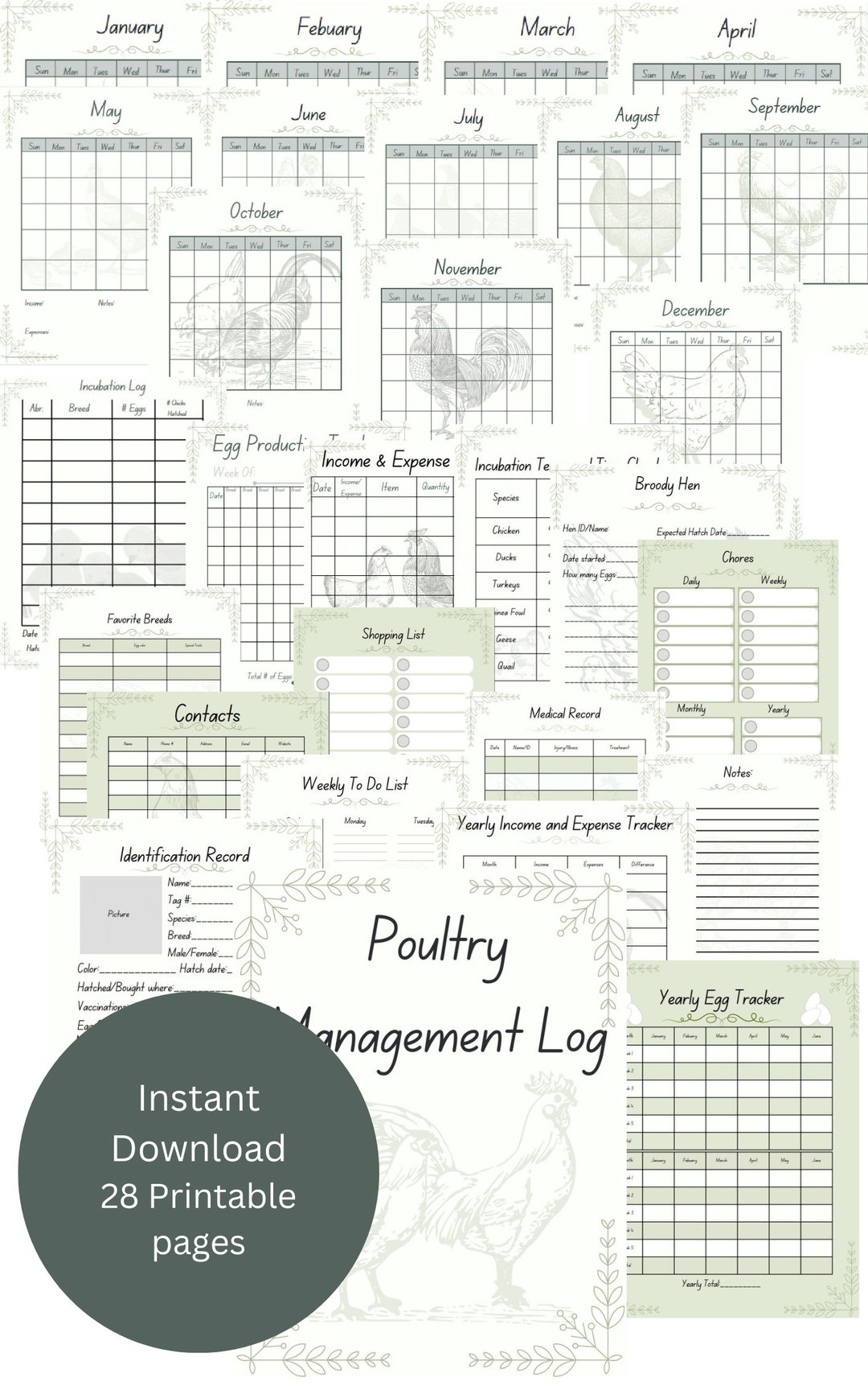 Poultry Record Keeping Log Printable PDF Farm Homestead