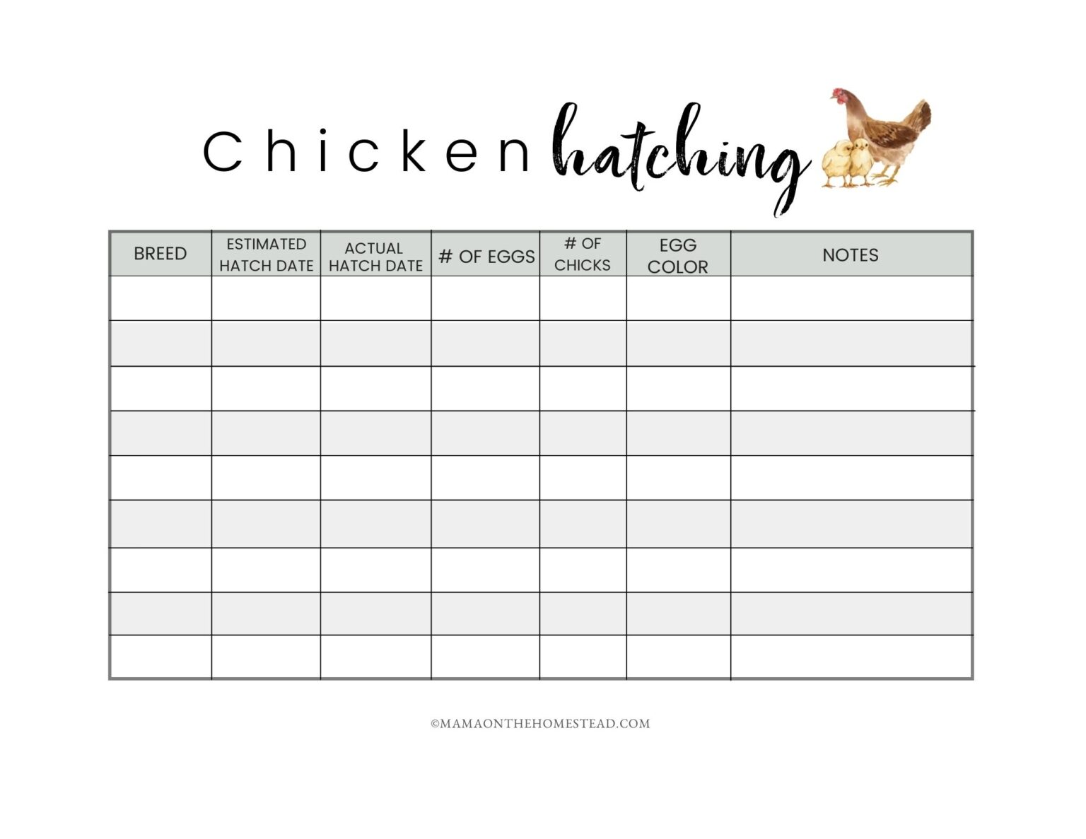 Printable Homestead Log for Raising Chickens and Chicken Planner