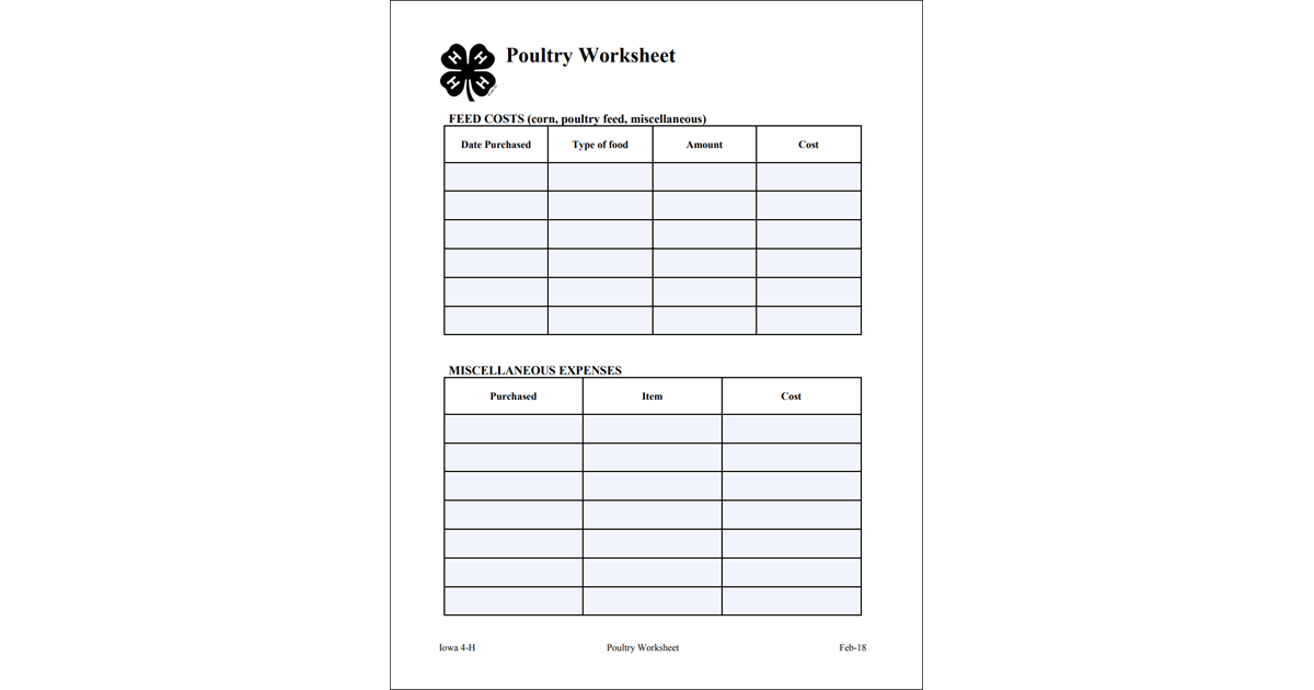 Record Keeping Worksheet Poultry Worksheets Library