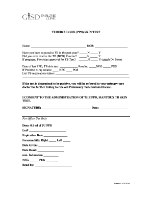Fillable Online TUBERCULOSIS (PPD) SKIN TEST Fax Email Print pdfFiller