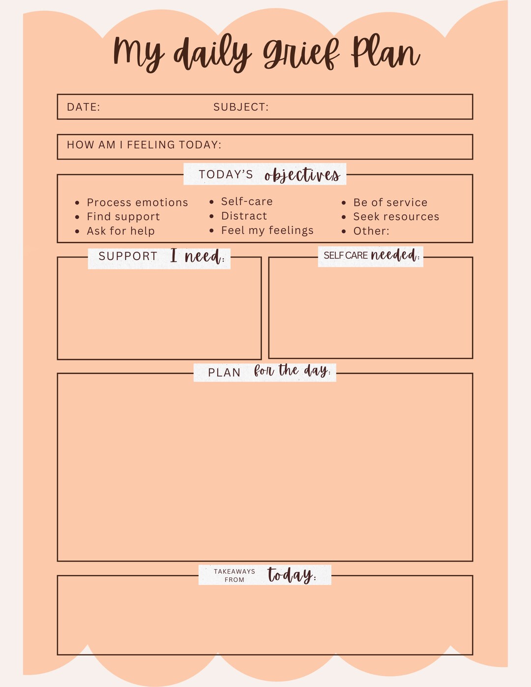 Daily Grief Plan Grief Therapy Tools Grief Therapist Grief Therapy