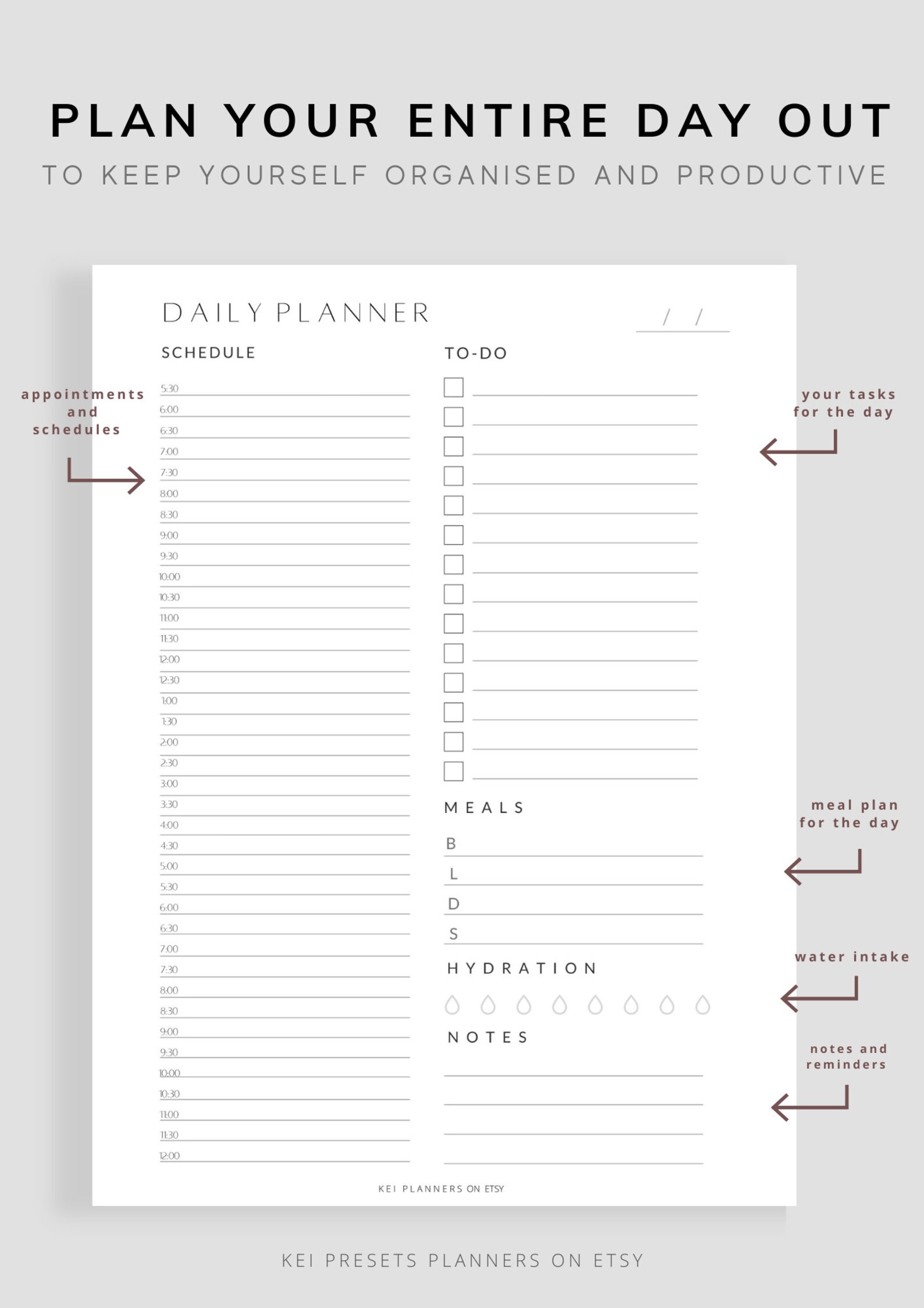 Printable Daily Planner Downloadable Planner Digital Etsy