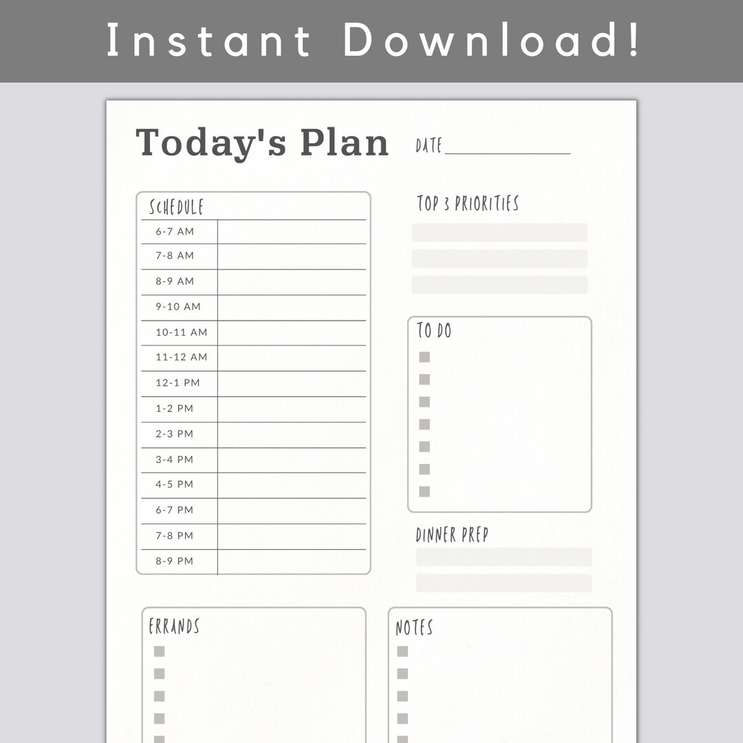 Daily Planner Printable Today #39 s Plan Daily Schedule Etsy