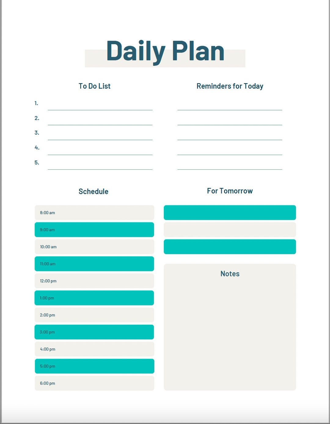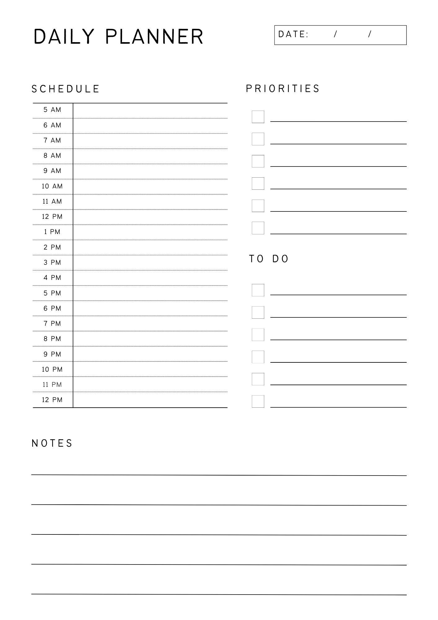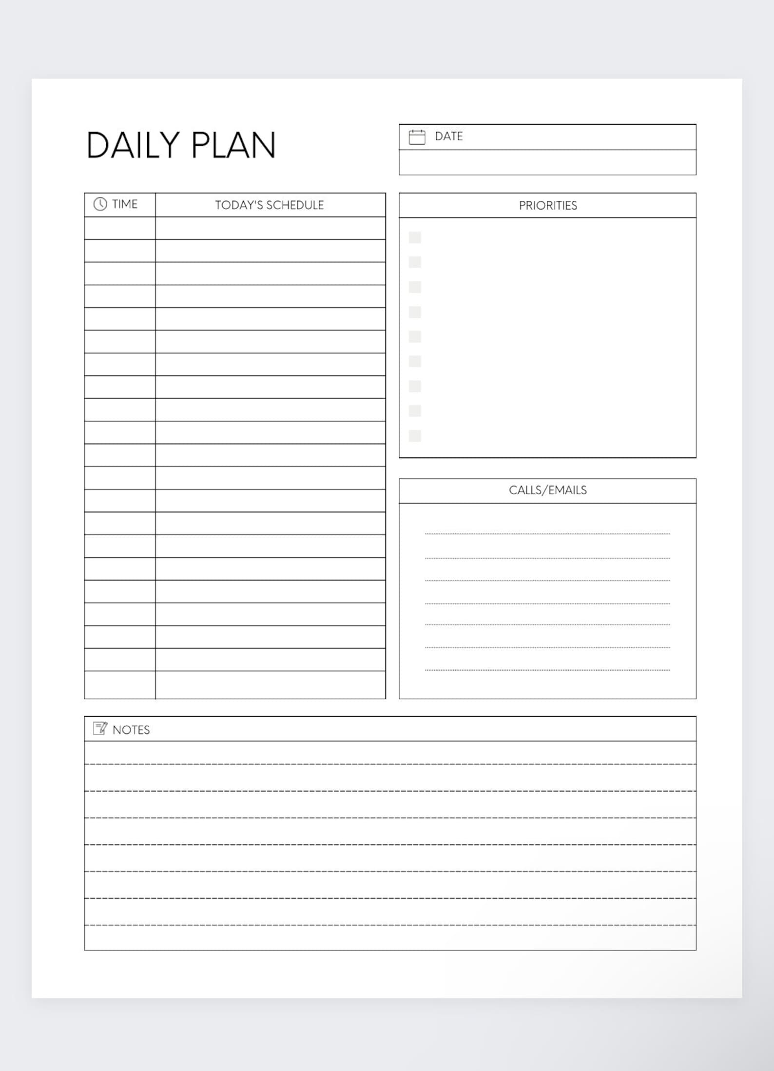 Daily Plan Printable Daily Task List Printable Daily Schedule