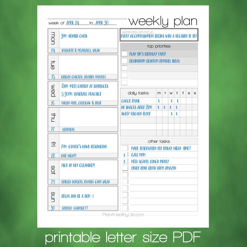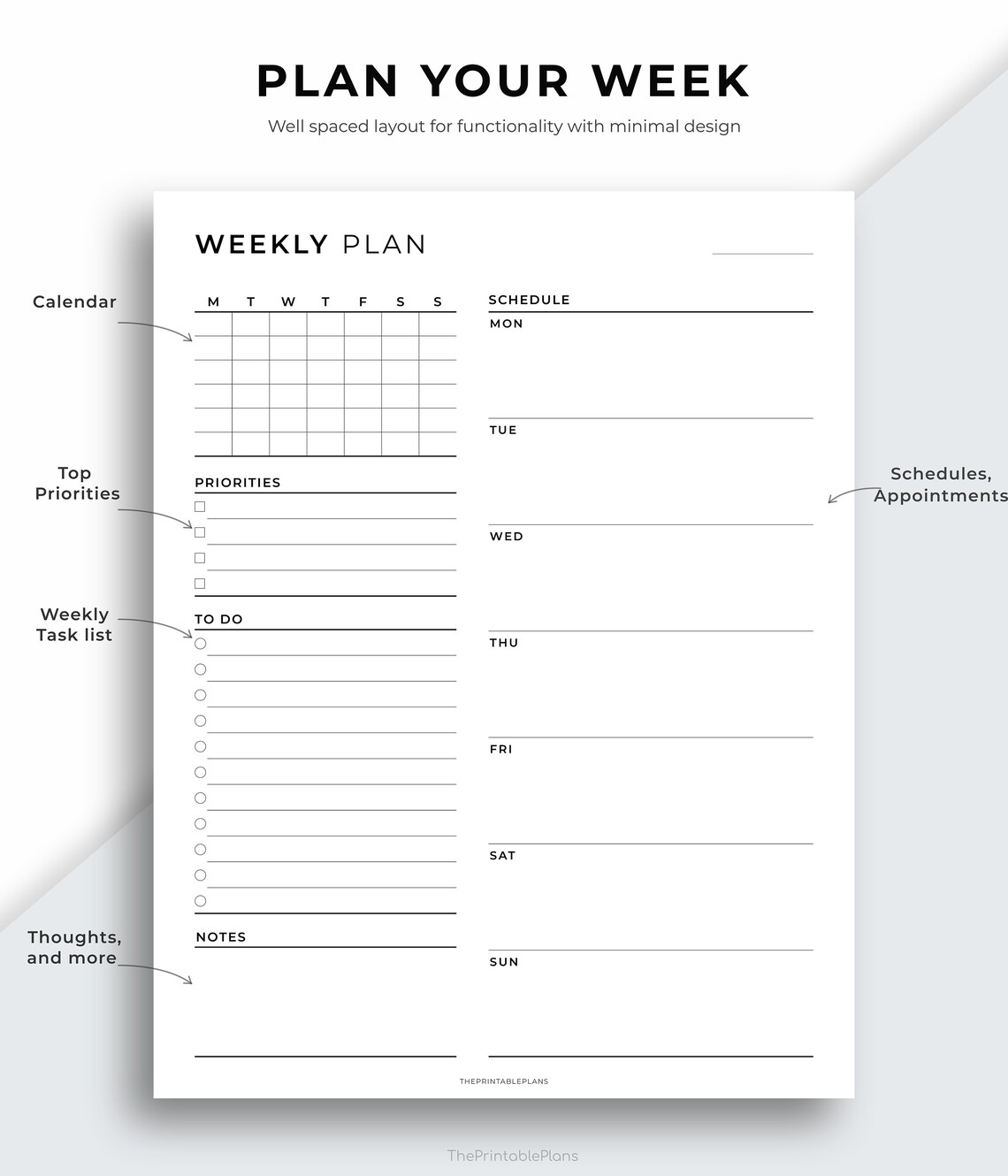 Printable Weekly Plan Daily Planner Weekly Schedule Weekly Organizer