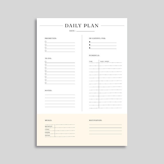 DAILY Day Planner Printable Insert Simple Portrait Page Etsy