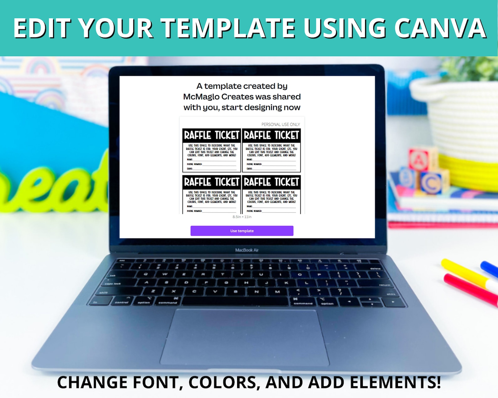 Printable Raffle Tickets Editable Raffle Tickets Template Etsy
