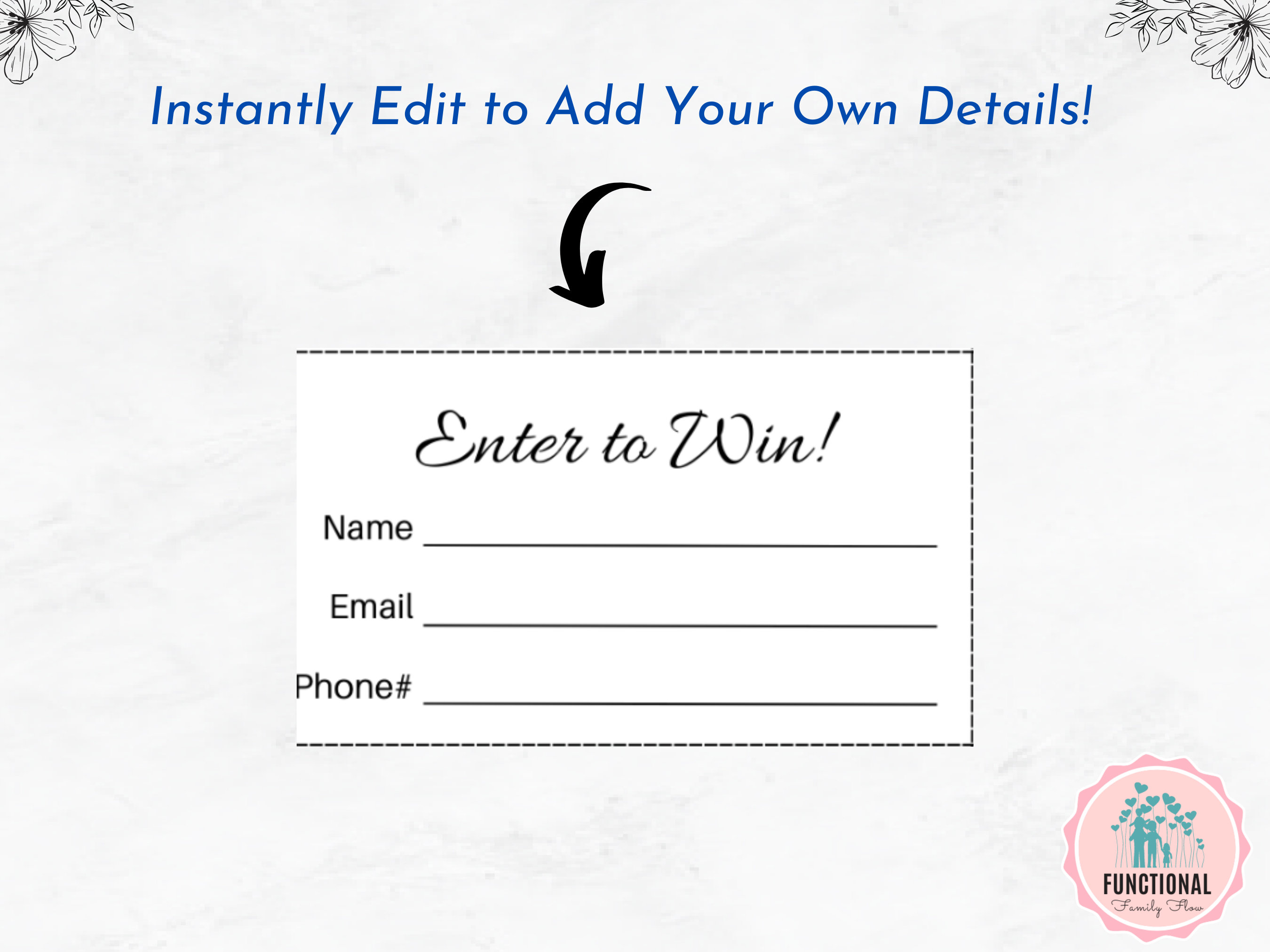 Printable Raffle Tickets V1 Name Email Phone DIY Print Cut