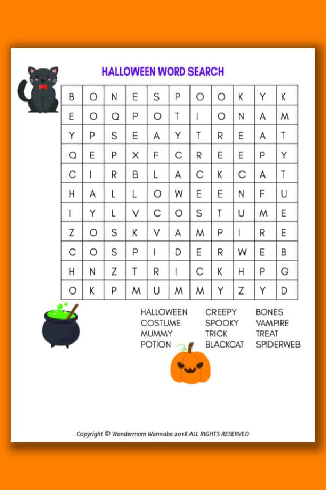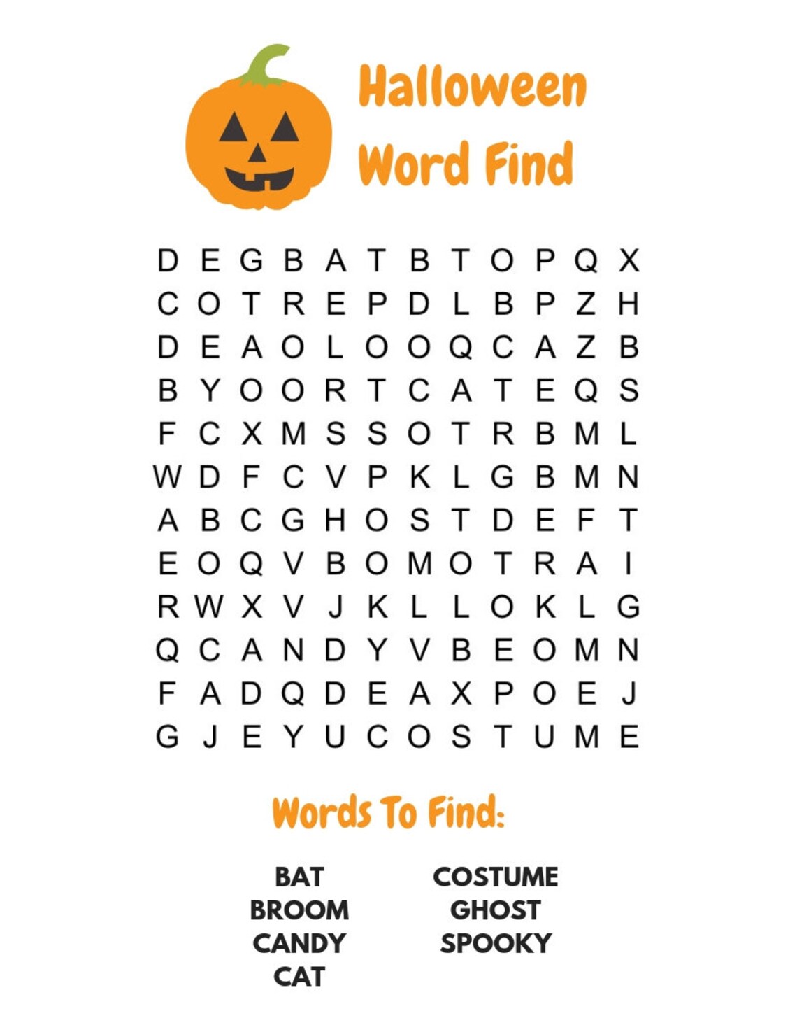 Halloween Word Search Printable Puzzles Safe Kid Games