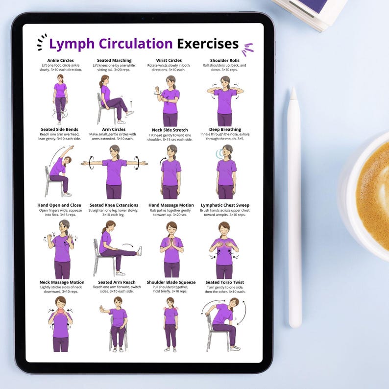 Lymph Exercise Chart Printable Hand Self Massage and Breathing Steps