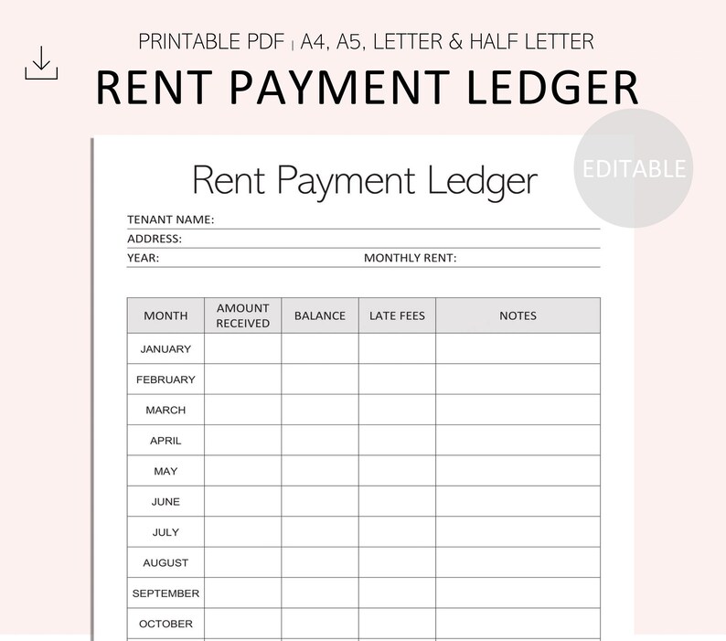 Rent Ledger Fillable and Printable Rent Payment Tracker Etsy