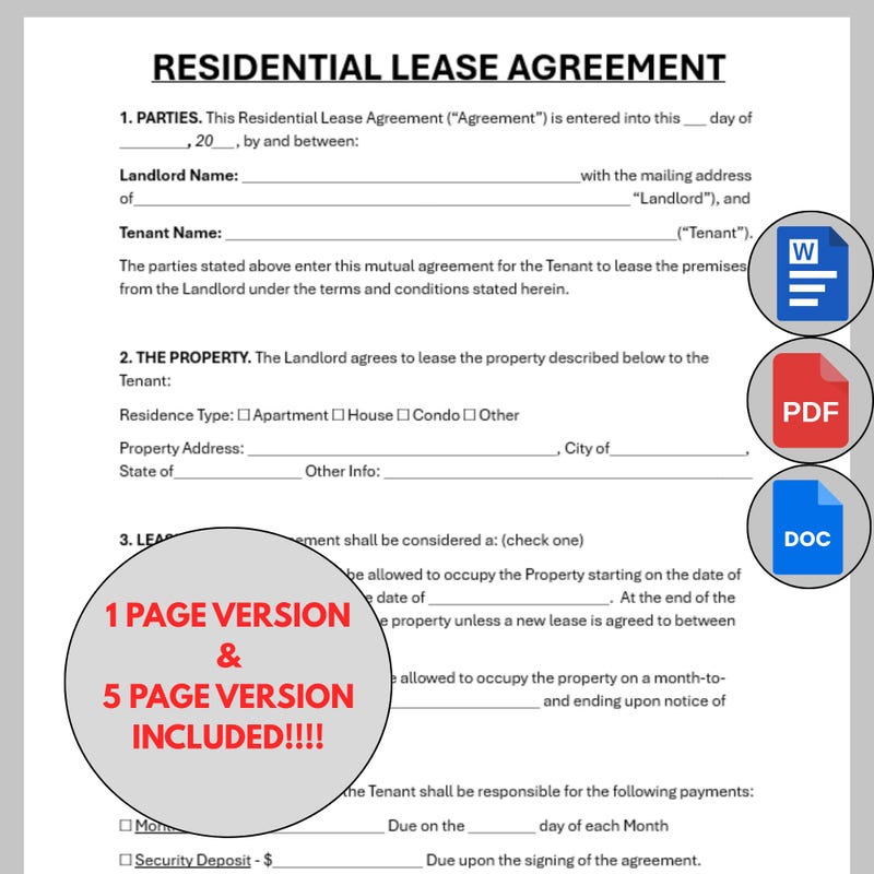 Free Printable Residential Lease Agreement Templates PDF Excel