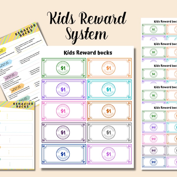 Editable Kids Reward Bucks Printable Mom Bucks PDF Reward System for